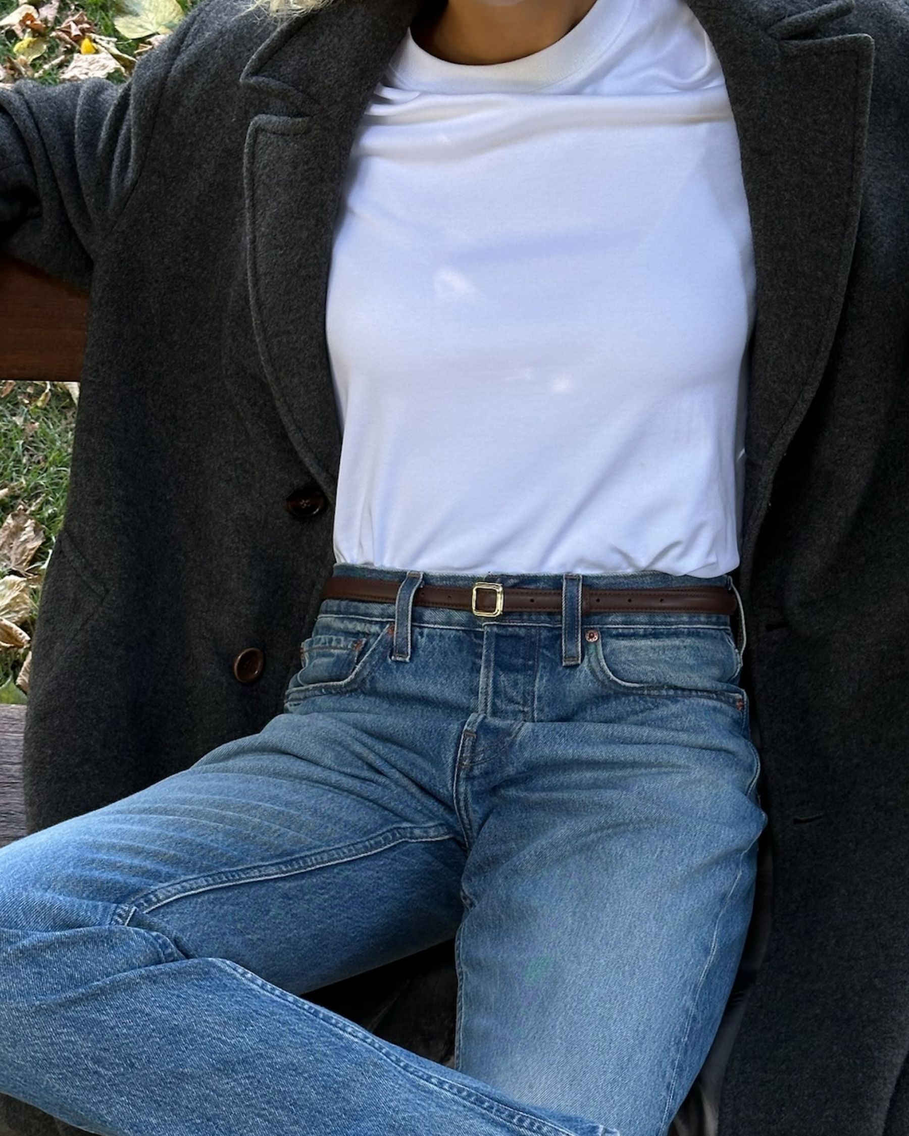 Leather accessories will always be a classic item for us to rely on when dressing for day-to-night occasions. As a natural extension of the LIÉ LEATHER universe, The Georgia Belt is now being introduced as a coherent part of The Staples Collection. The ultimate classic leather belt with a new polished signature hardware crafted with a subtle design with strong associations to the existing jewelry pieces.