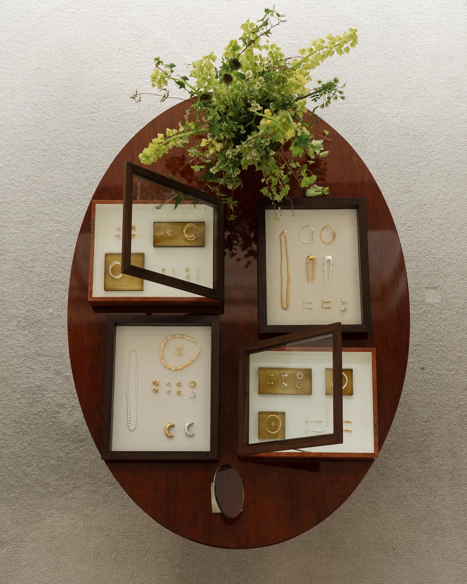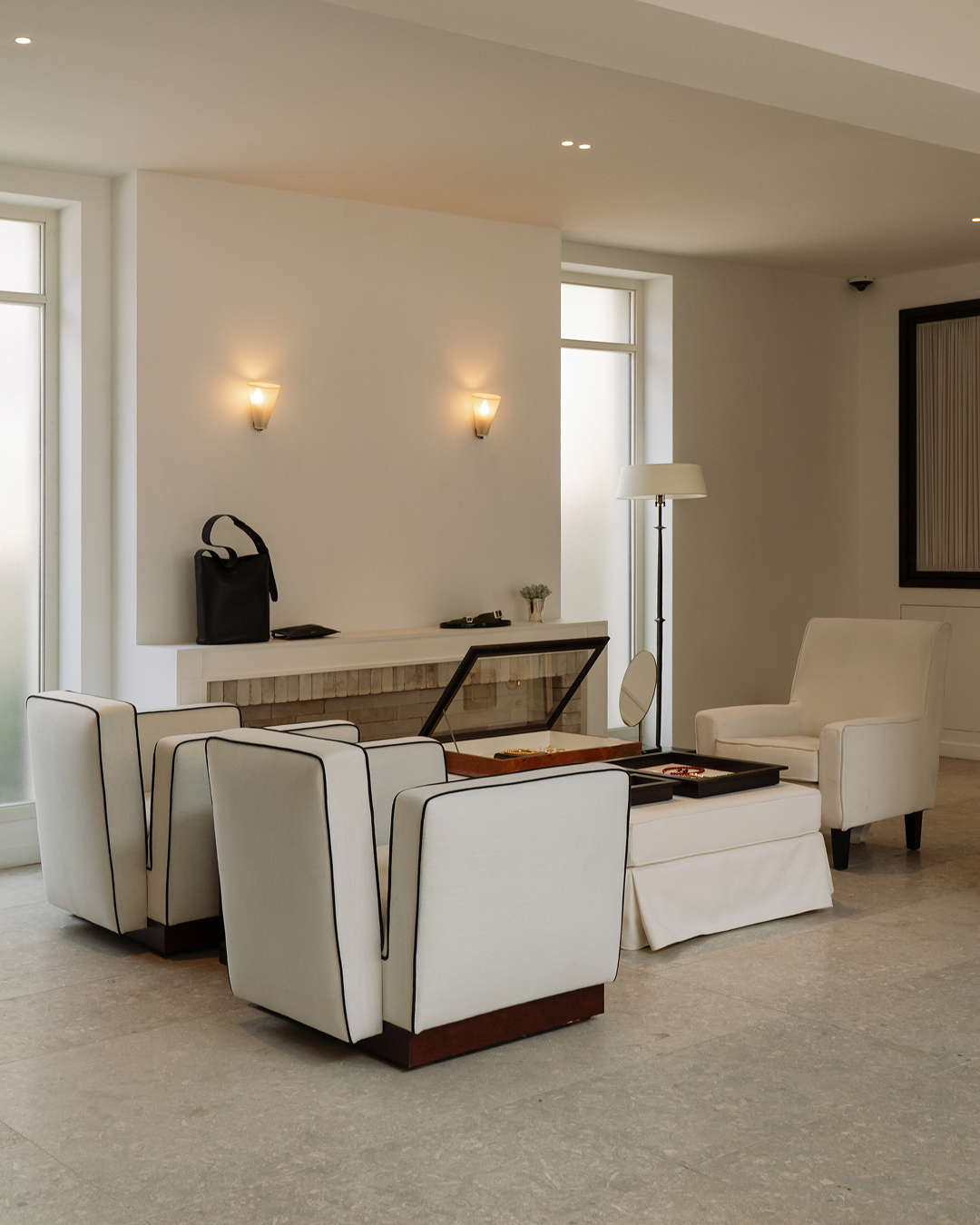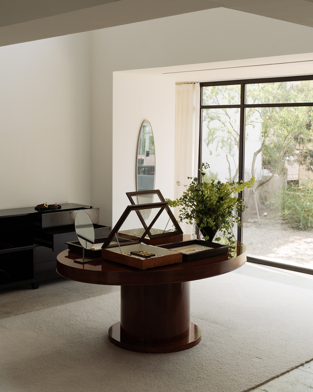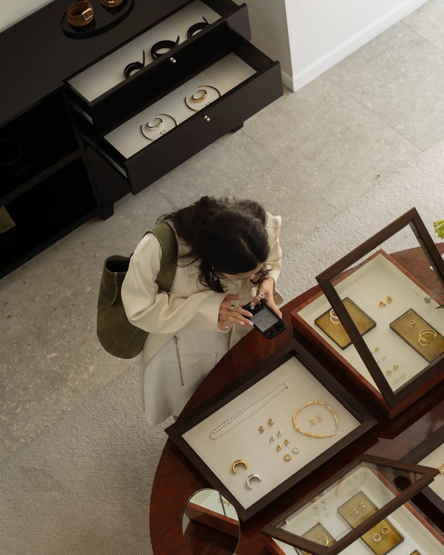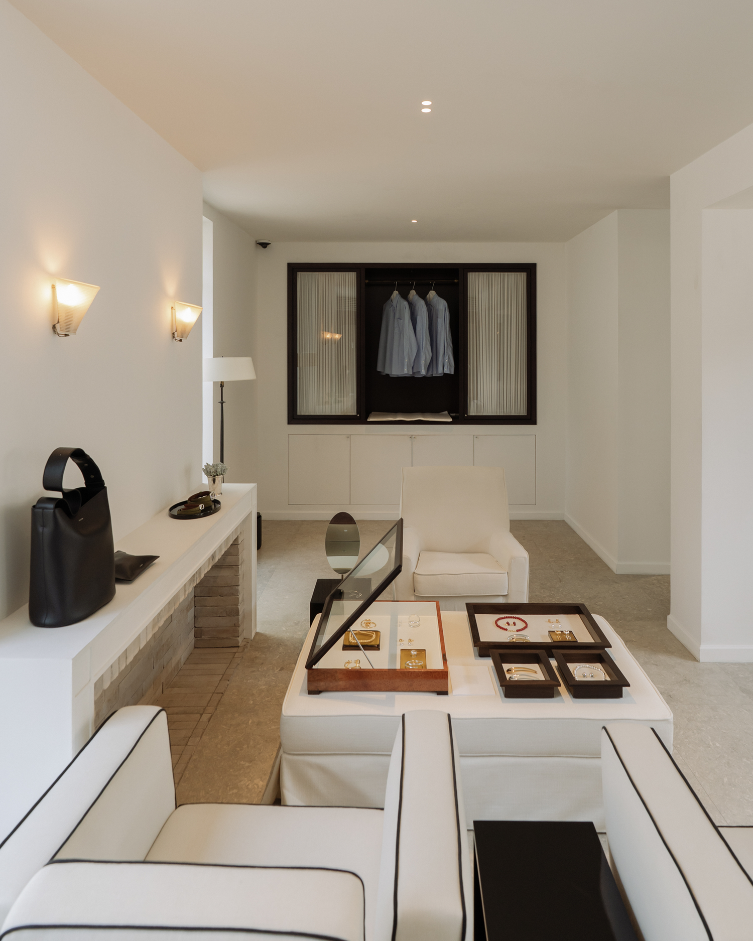 Within this space, our jewelry and leather goods entered into dialogue with the architecture itself, soft light, textured surfaces, and quiet balance.