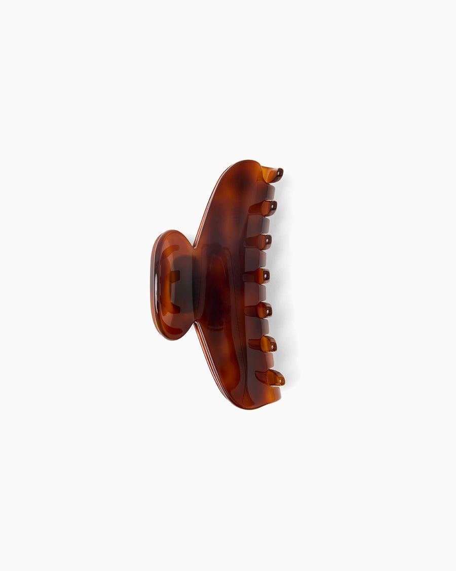 A refined essential for effortless styling. The Faye Hair Clip in tortoise acetate offers both functionality and refined simplicity, and its form is designed to secure the hair with ease while maintaining a sense of understated elegance.