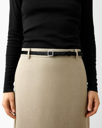 Elevate your wardrobe with the timeless and elegant wardrobe staple, The Georgia Belt Slim in Black Calf Hair. Expertlycrafted from 100% ItalianCowLeather, thisbeltshowcases an exquisite finish thatadds a touch of discreet detail to any outfit.