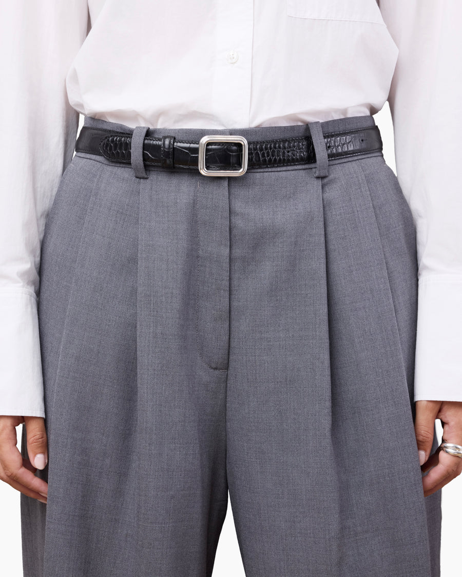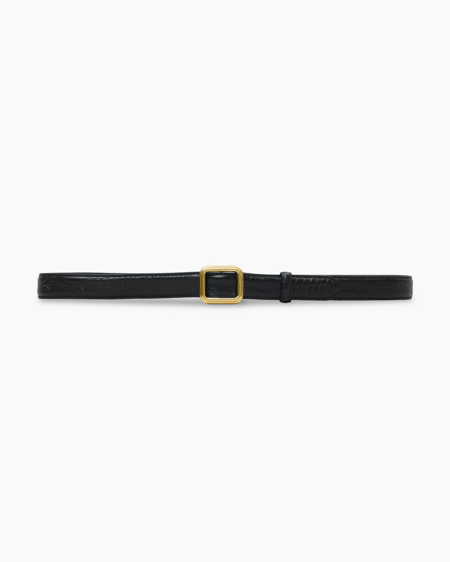 Elevate your wardrobe with the timeless and elegant wardrobe staple, The Georgia Belt Wide in Black Croc. Expertly crafted from 100% Italian Cow Leather, this belt showcases an exquisite finish that adds a touch of noticeable detail to any outfit.