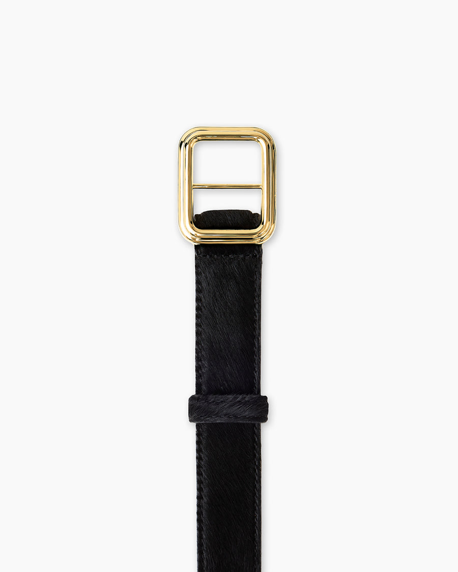 Elevate your wardrobe with the timeless and elegant wardrobe staple, The Georgia Belt Wide in Black Calf Hair. Expertlycrafted from 100% ItalianCowLeather, thisbeltshowcases an exquisite finish thatadds a touch of discreet detail to any outfit.